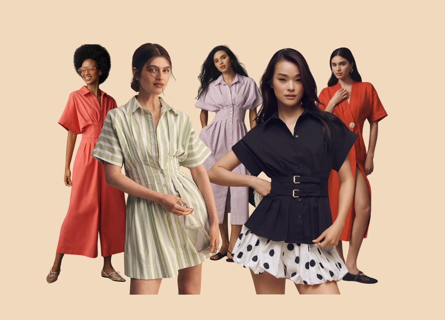 The Gorgeous Tobie Collection by Exquise at Anthropologie features pleated styles with waist cinching, perfect for creating an interesting vibe as well as an hourglass shape with wide sleeves.